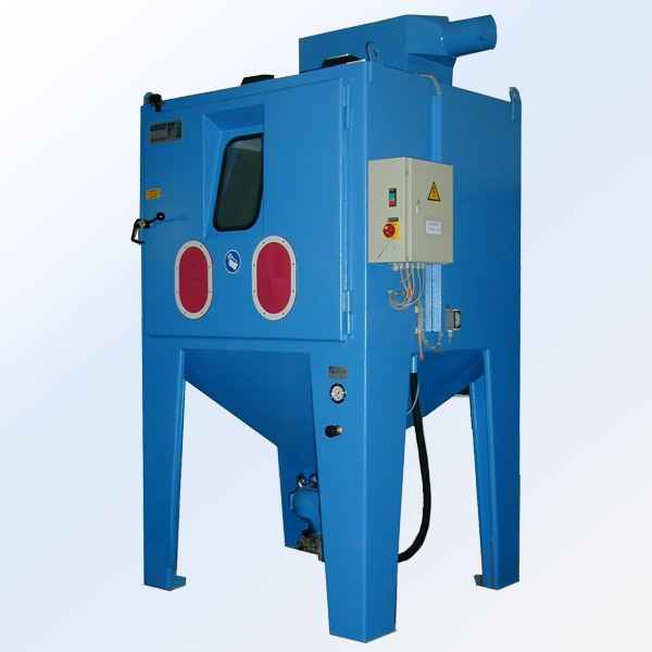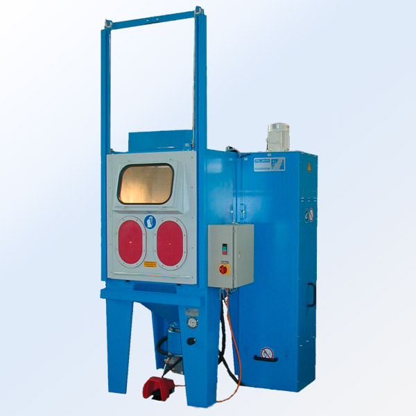 Kullanımında kendisini 1000’lerce kez kanıtlamış enjektör tesisinde bilinçli olarak sağlam ve yerden tasarruf sağlayan bir konstrüksiyonu dikkate aldık. Kolay işleyen ve eğrilmez işleyen ön cephe amortisörlü kapı, sağlam bir çalışma ızgarası ile donatılmış olan kumlama bölmesine tam bir erişim sunar. Katlanır çerçevedeki hızlı değiştirilebilir koruyucu cama sahip büyük bir gözetleme penceresi, işlenecek materyaller üzerine en iyi bakışı sağlar. Filtre kartuşlu özel toz emiş ünitemiz ve ışıltısız aydınlatılan bir kumlama bölmesi, sürekli kumlama tatbikinde dahi açık bir görüşü garanti ederler. Tesisin bakımı, hızlı ve sorunsuz şekilde gerçekleştirilir.